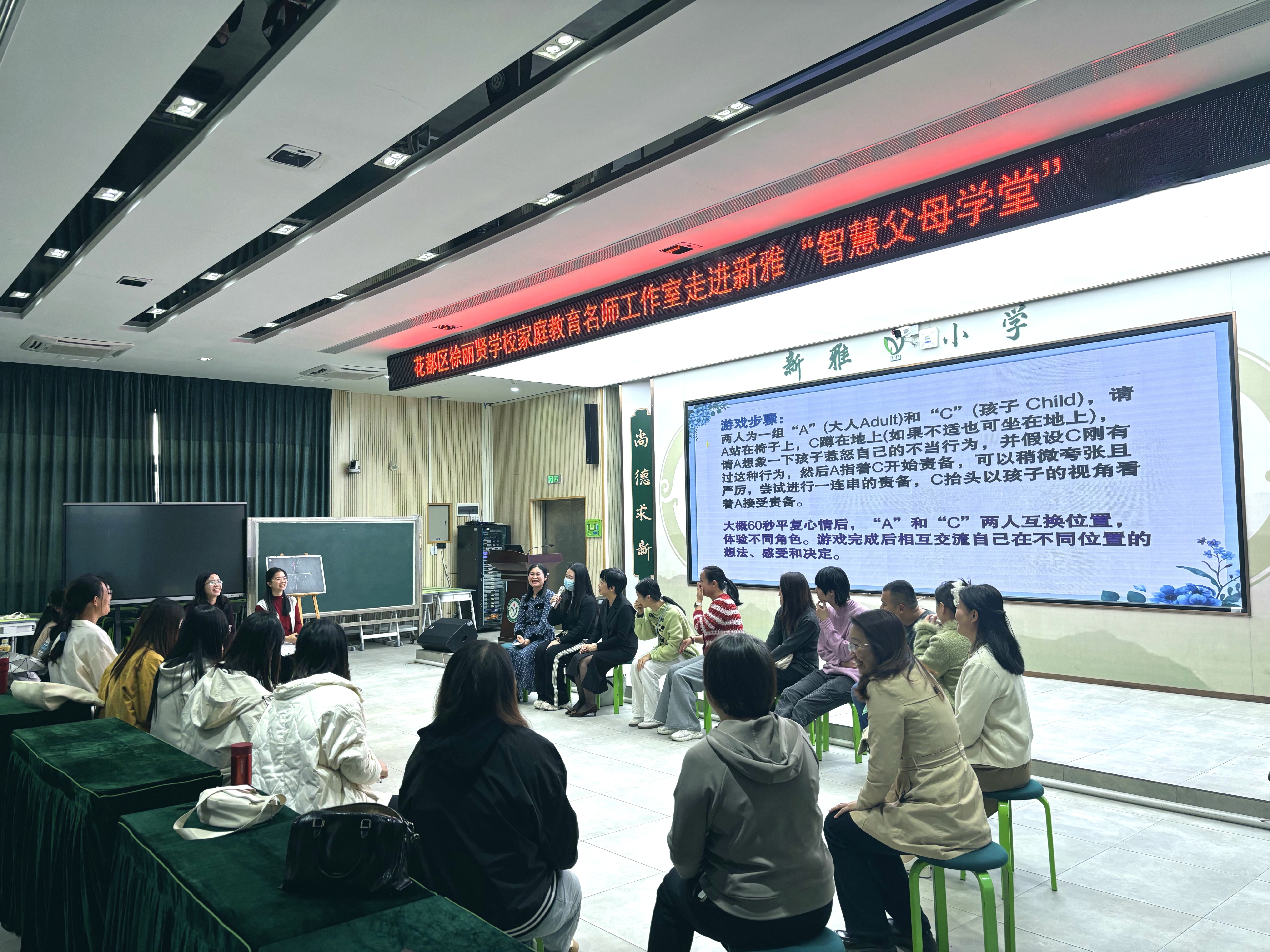 活动特邀新雅小学吉庆燕校长、徐丽贤副校长及其家庭教育工作室团队担任主讲。课程围绕“亲子冲突化解”“合作式沟通技巧”等核心内容,融合互动游戏、情景模拟、案例分析等多种形式,深入浅出地引导家长理解如何将日常冲突转化为教育契机,以“时光慢递”的耐心与智慧,陪伴孩子共同成长。